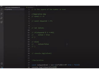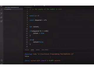 A higher-order function (HOF) is defined by its ability to take functions as arguments or return functions as results. Lazy evaluation is introduced as a strategy that delays the computation of expressions until needed, optimizing memory and performance, with both advantages and disadvantages discussed. The document also contrasts functional programming with object-oriented programming, emphasizes lambda calculus, and explains evaluation techniques including alpha, beta, and eta reductions.