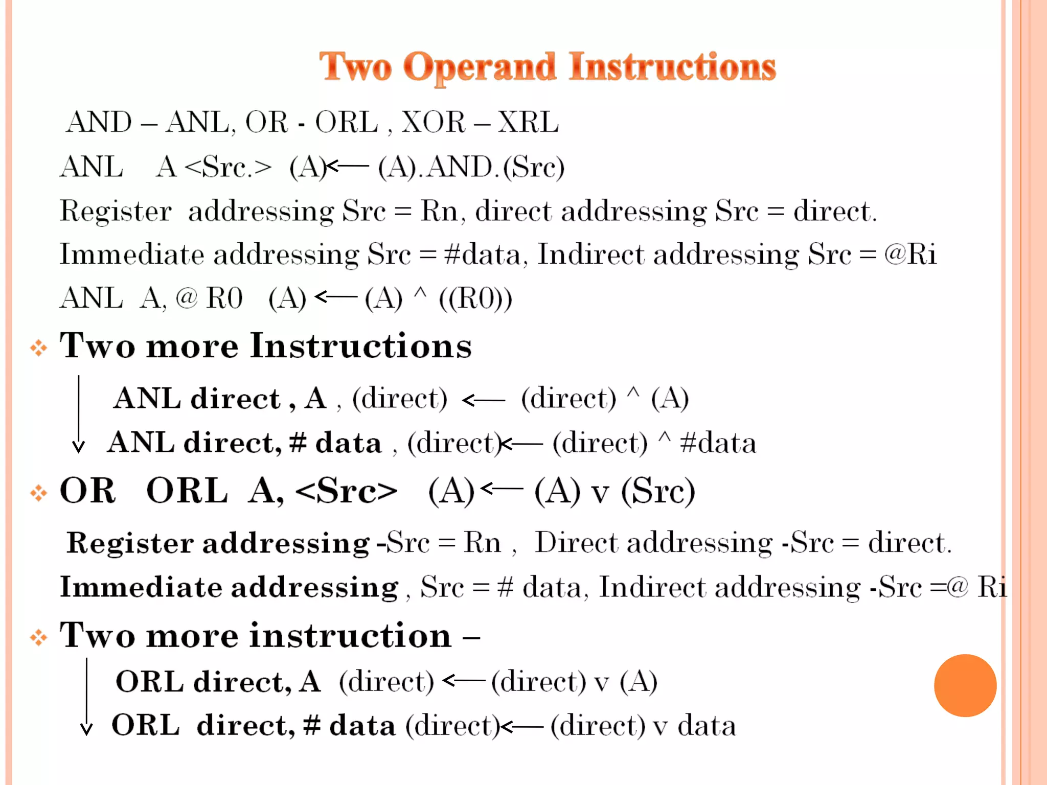 Immediate addressing– Src = #data , Indirect addressing – Src = @Ri