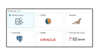 • DynamoDB: Key-value, for high-traffic apps, e-commerce, gaming.