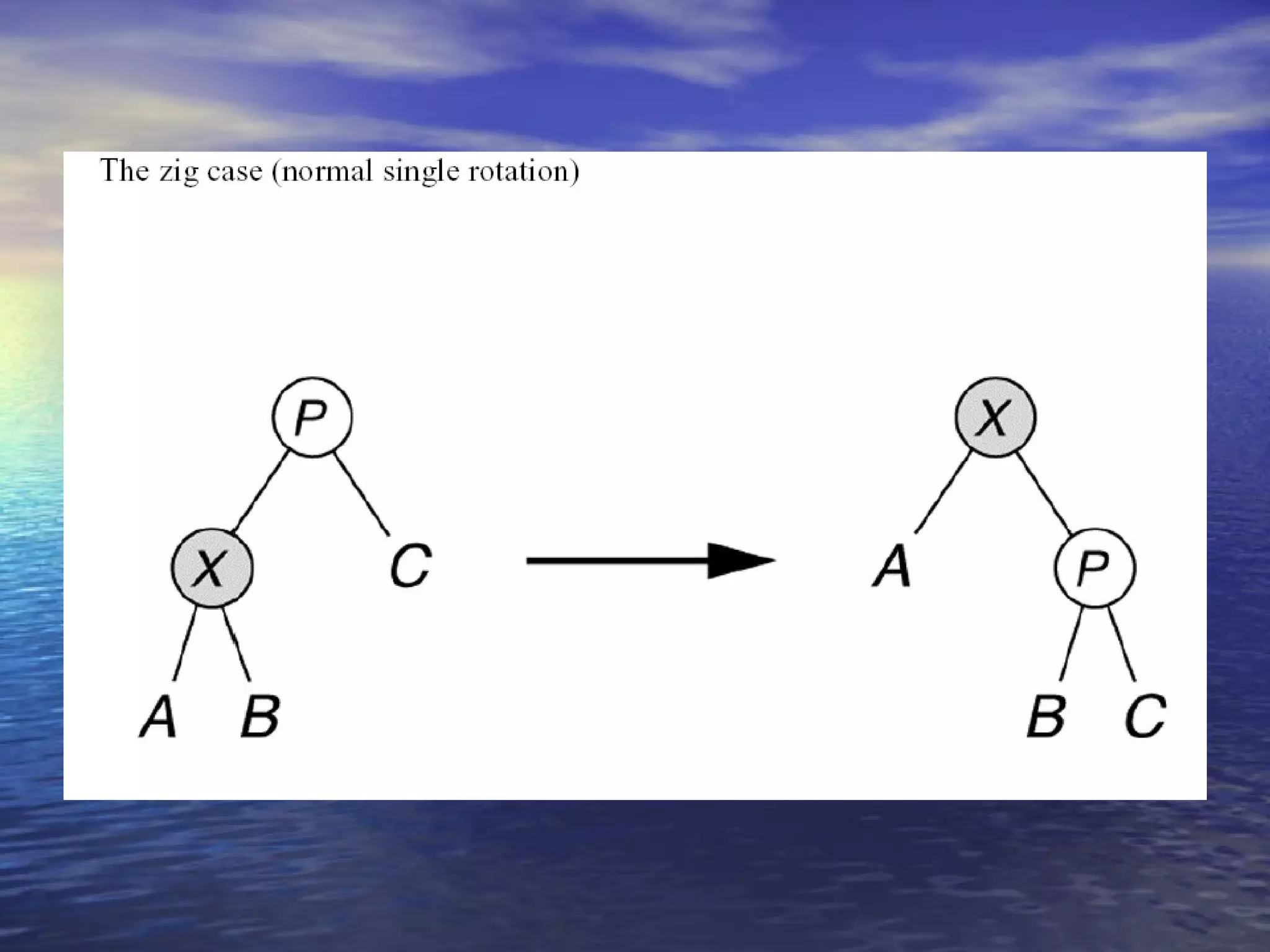 Case 1: Zig X L R L R Y X Y XR YL YL Yr IfY should become root, then X and its right sub tree are made left children of the smallest value in R, and Y is made root of “center” tree. Y does not have to be a leaf for the Zig case to apply. Yr XR