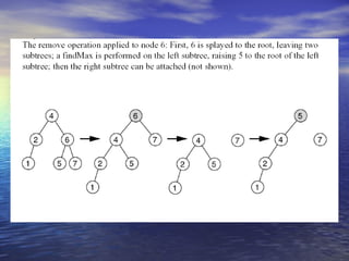 Splay Trees Implementation •See page 457 for generic SplayTree class implementation. • Page 458 shows Top-Down splaying method. • Refer to page 459 for insertion method into the Top-Down Splay Tree. • Page 460 shows deletion method from the tree.