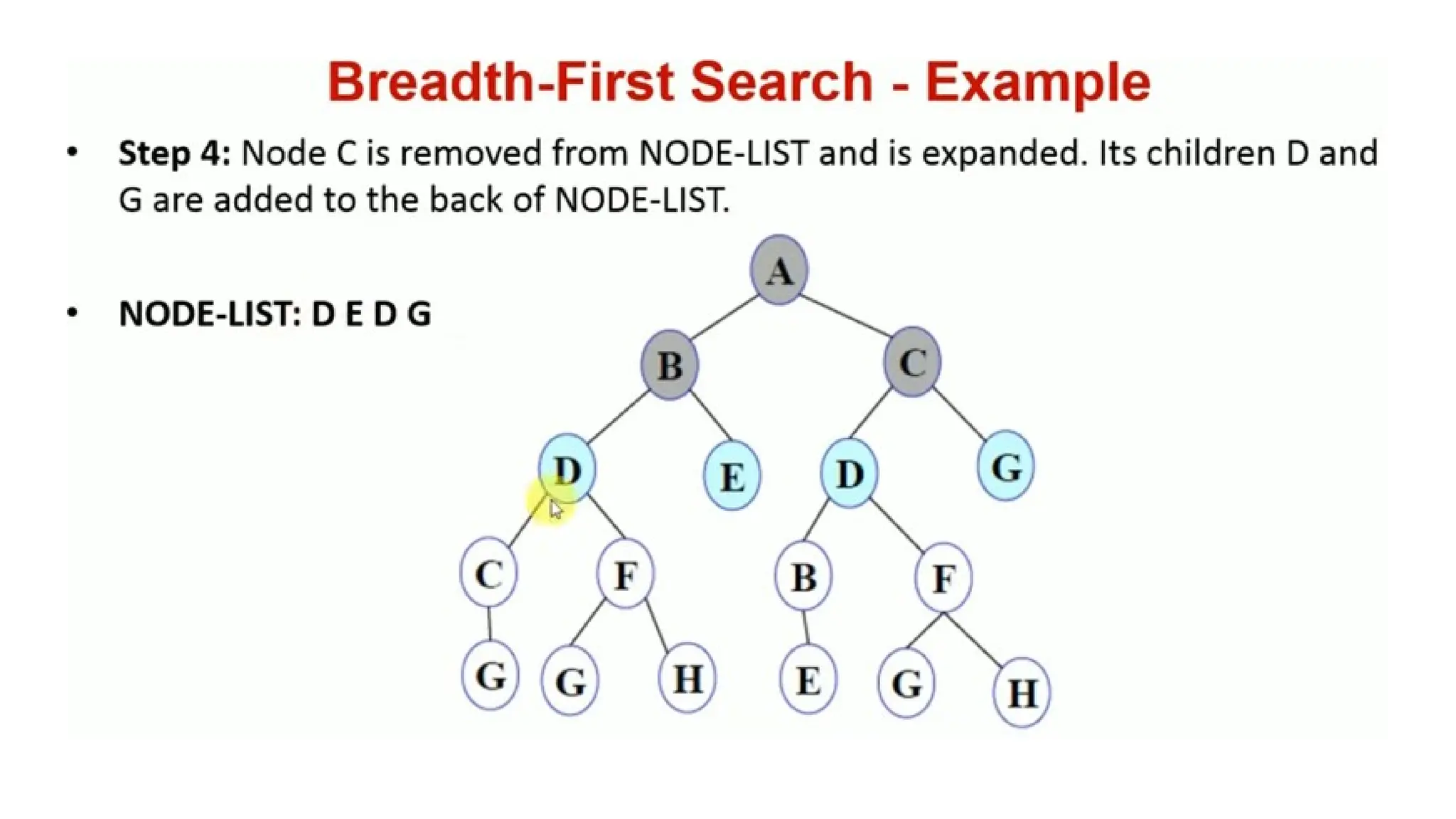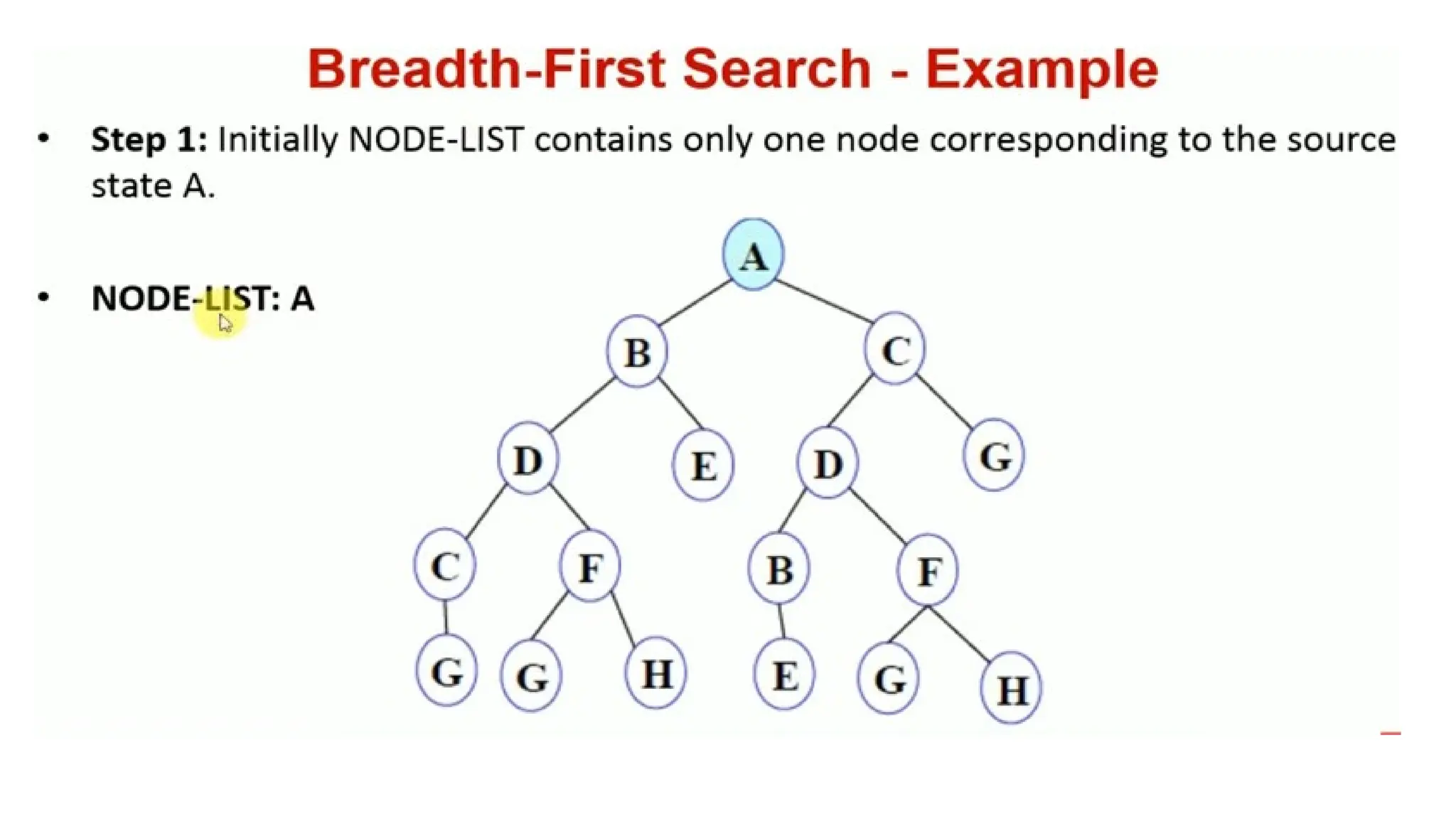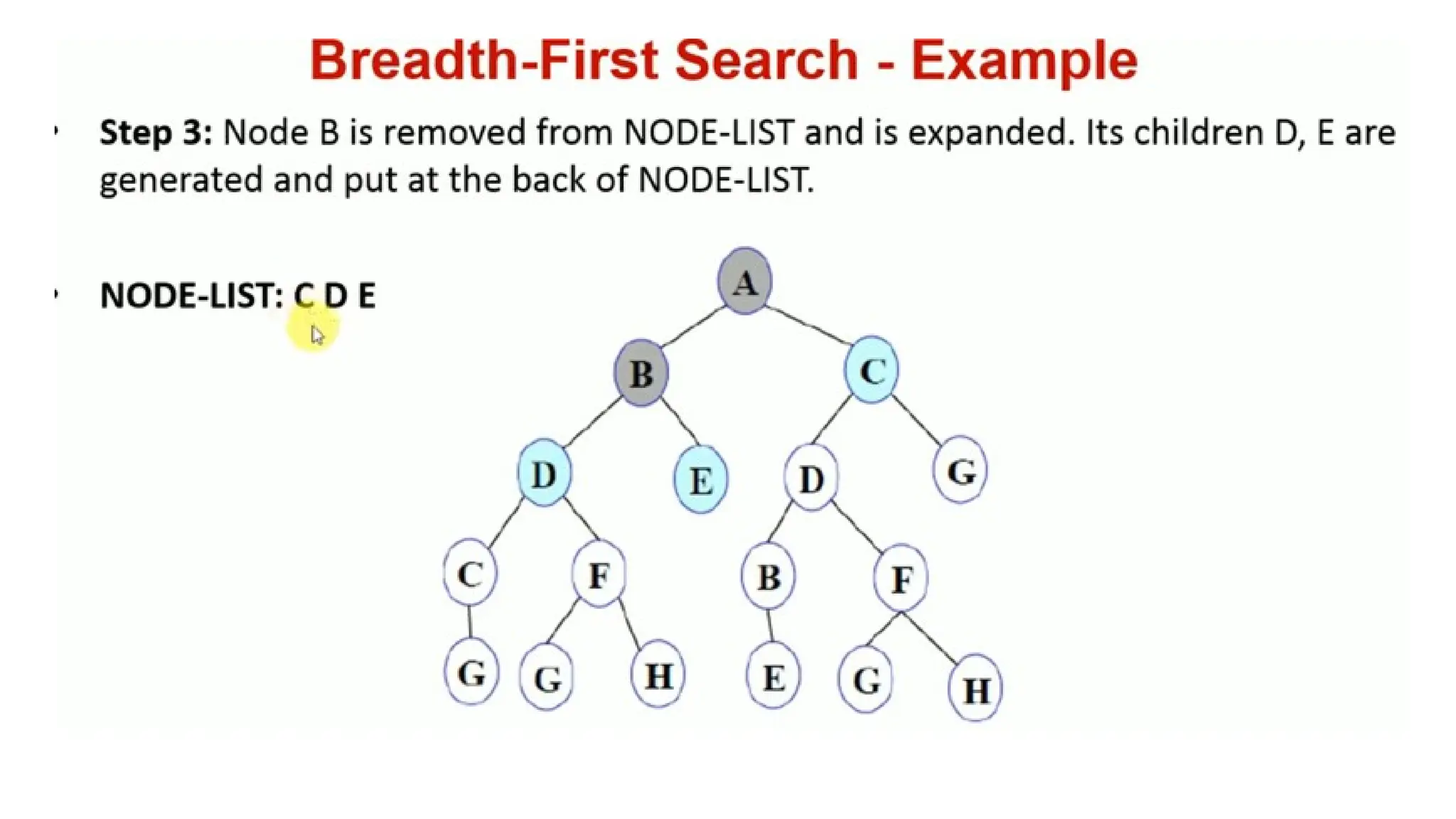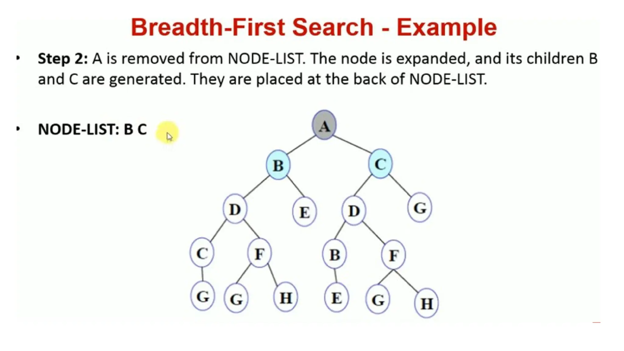 • In general, all the nodes are expanded at a given depth in the search tree before any nodes at the next level are