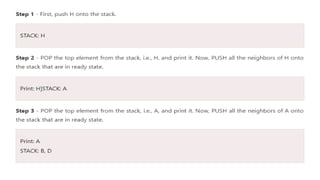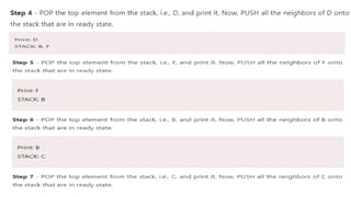 The step bystep process to the DFS traversal is given as