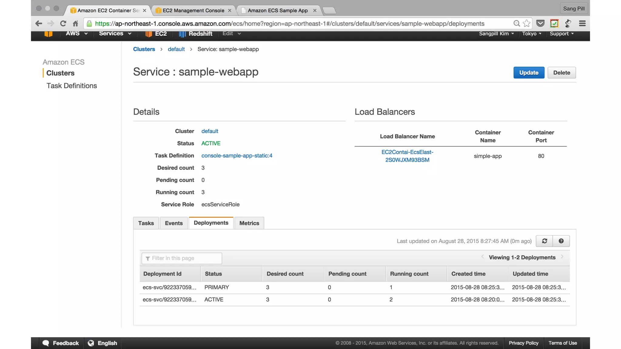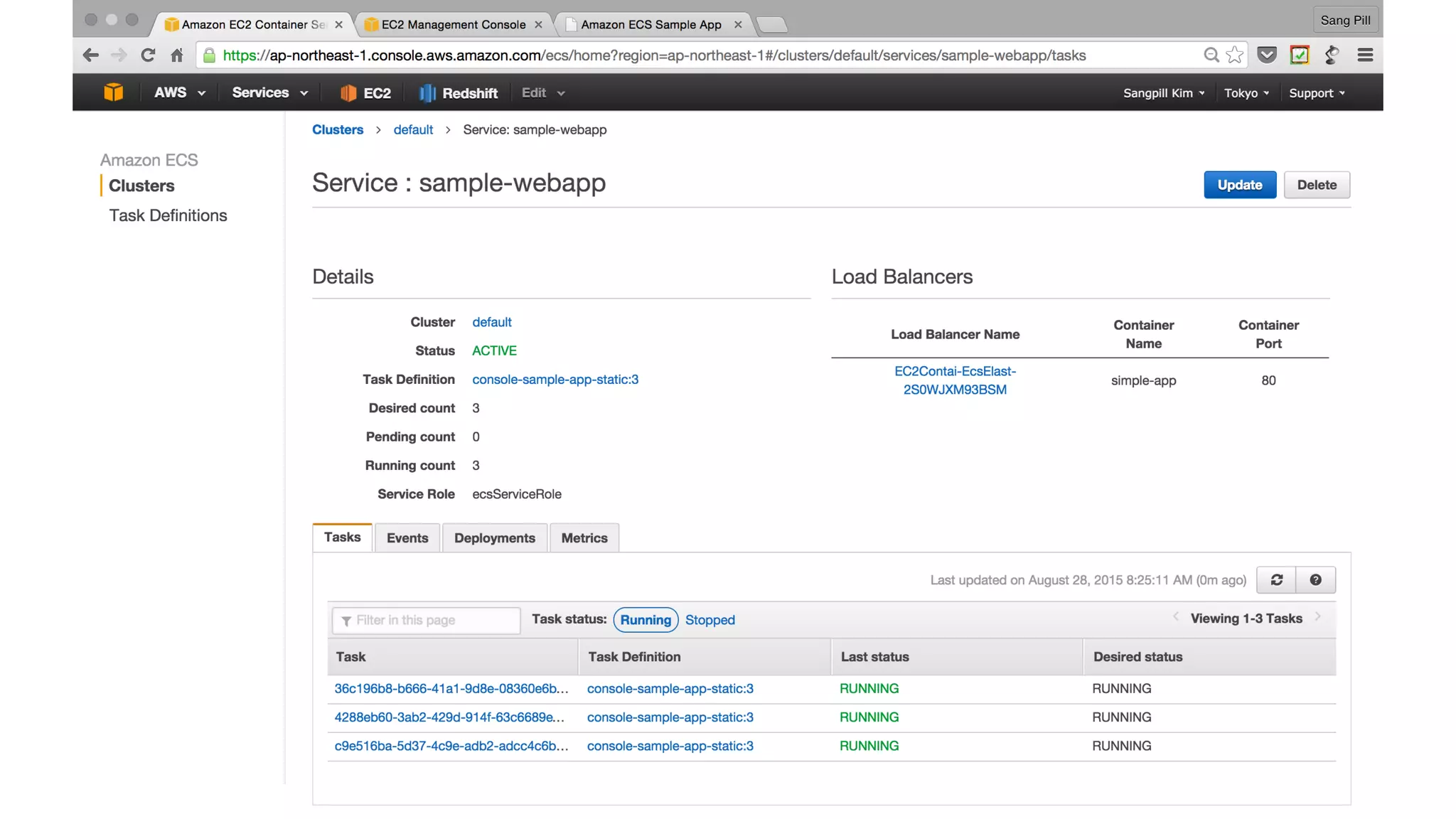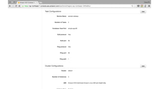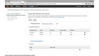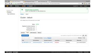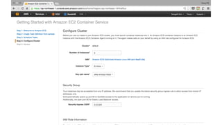 Amazon EC2 Container Service(ECS)는 Docker 콘테이너를 지원하는 확장성과 성능이 뛰어난 콘테이너 관리 서비스입니다. Amazon ECS를 사용하면 자체적인 클러스터 관리 인프라를 설치, 운영 및 확장할 필요가 없으며, 다른 AWS 서비스와 연동하도록 설계 되어 있습니다.