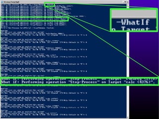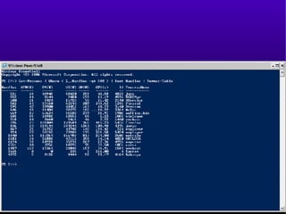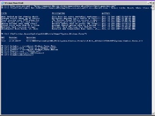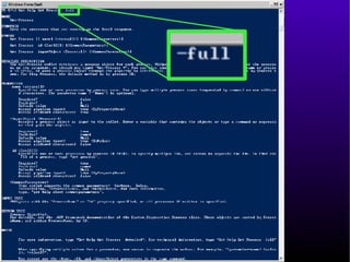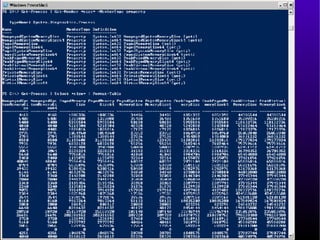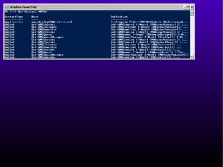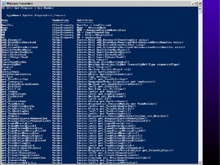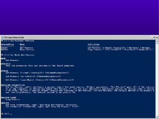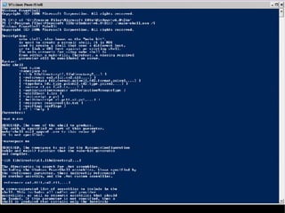 This document provides an introduction and overview of Windows PowerShell. It discusses what PowerShell is, how it works, and how it can be used for administration tasks and extended to work with other products. The document covers PowerShell concepts like verbs, nouns, pipelines, and cmdlets. It also provides examples of using PowerShell for ad-hoc tasks and developing PowerShell scripts and cmdlets for production environments.