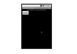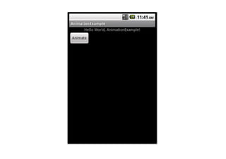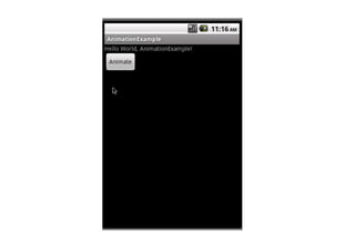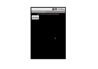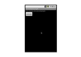 The document discusses Android drawing and animation. It covers drawing using drawables, shapes, and custom views. It also covers view animation, which includes tween animation defined in XML files to transition views between states, and frame animation to transition between drawables. The document also introduces the Android property animation system for animating any object properties.