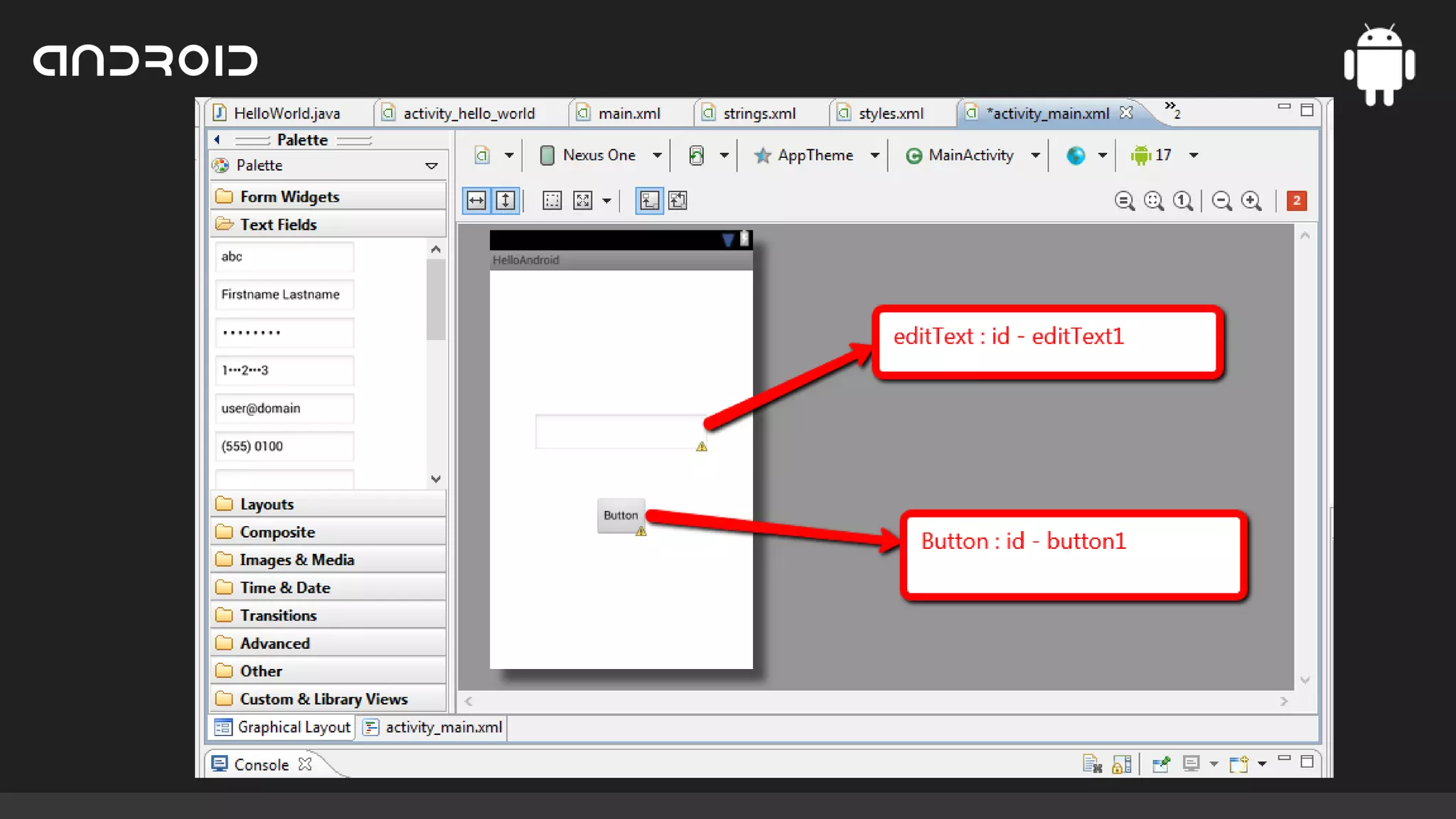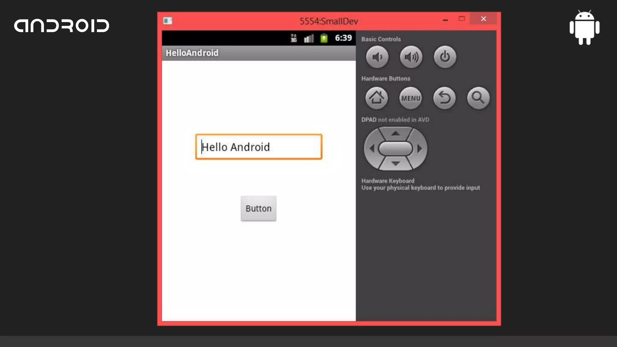 must display “Hello Android”