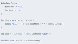 This document discusses Angular 2 with TypeScript. It introduces TypeScript as a superset of JavaScript that adds optional static typing and classes. TypeScript uses a transpiler to convert code to older JavaScript for browser compatibility. Angular 2 is a front-end web application framework maintained by Google that addresses challenges of single-page apps. It uses components, data binding, services, dependency injection, and directives. Components are basic UI building blocks and services refactor data access to keep components lean. Directives change DOM layout or element appearance and behavior.