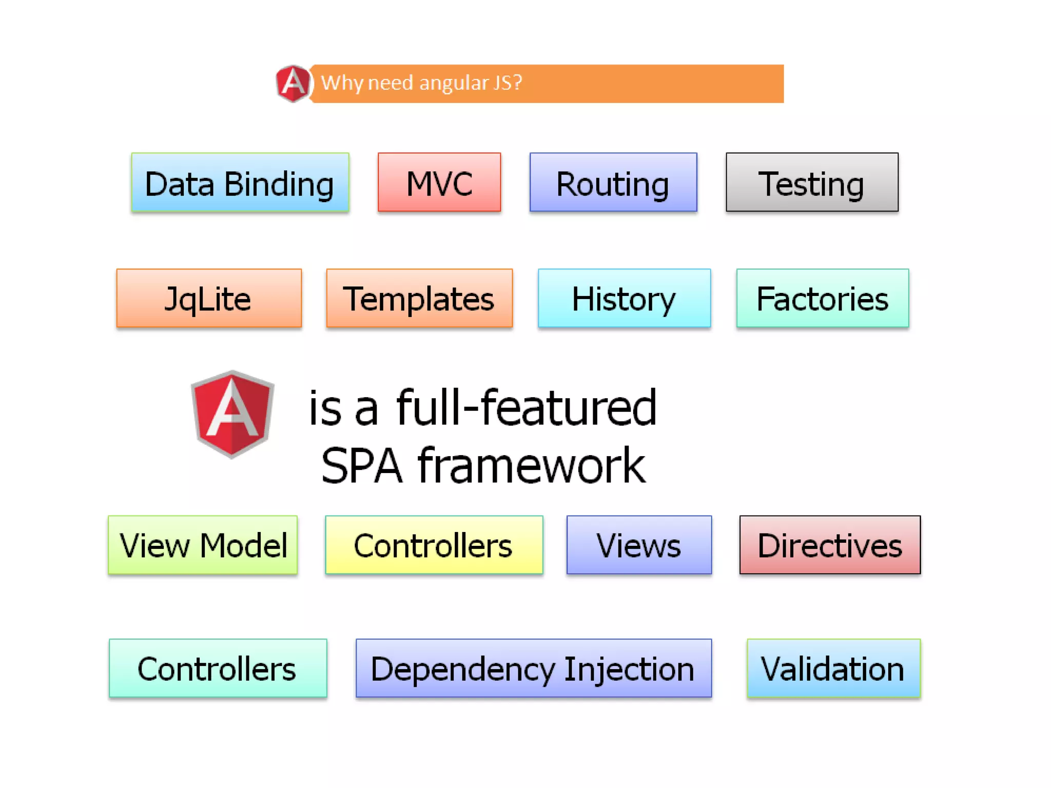 The document presents an agenda for an introduction to Angular JS. It discusses what should be known before using Angular JS, including HTML, CSS, JavaScript concepts. It explains how web pages get to browsers through DNS servers. It defines Angular JS as a client-side framework written in JavaScript that allows extending HTML with custom tags and attributes. It contrasts Angular JS's MVC approach of augmenting HTML with other frameworks manipulating the DOM from outside. The benefits of Angular JS are listed as MVC support, two-way data binding, enabling single page apps, managing state, controls, parallel development and handling dependencies. The agenda concludes with a roadmap and directory architecture for Angular JS.