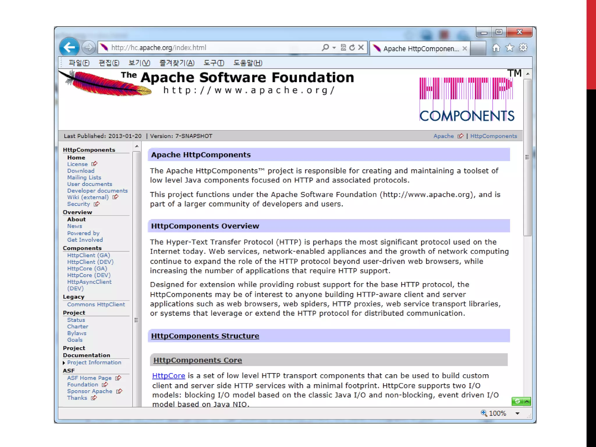 Http 프로토콜 통신을 지원하는 자바 기반의 Component