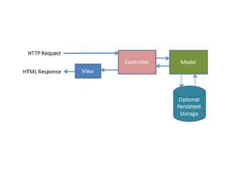 - ASP.NET MVC has gone through multiple versions, adding features like the Razor view engine, Web API, and improvements to templates and validation. MVC controllers return action results like views to associate input with output.