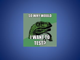 This document discusses automated testing for PowerShell. It covers different types of automated tests like unit tests, integration tests, and behavior driven development. It introduces Pester, a framework for writing BDD-style tests in PowerShell. While Pester allows writing tests, it does not enable mocking or stubbing. The document demonstrates how to perform unit testing, stubbing, and mocking in PowerShell by overwriting functions and setting expectations and behaviors.