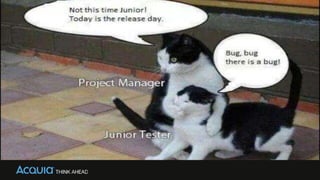 This document discusses automated testing with Codeception. It introduces test-driven development (TDD) and its benefits. Codeception allows running different types of tests (acceptance, functional, unit) from one place. Installing and using Codeception for testing Drupal is described, including generating tests, running tests, using Selenium WebDriver, cleaning up databases, and reusing test code with step objects and page objects.