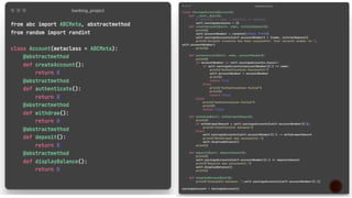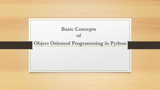 It describes inheritance, multiple and multilevel inheritance. It covers abstraction, encapsulation, polymorphism and operator overloading. It also discusses naming conventions, abstract base classes, overriding and the use of super().