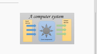 A computer system can function without peripheral devices but it cannot function without core components. Examples of core