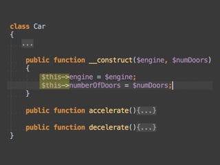 The document outlines a presentation on object-oriented programming (OOP) in PHP, delivered by David Stockton. It covers key concepts such as classes, objects, interfaces, inheritance, and encapsulation, emphasizing the advantages of OOP over procedural coding. The talk also includes discussions on visibility modifiers, constructors, and the importance of interfaces in establishing a common API.