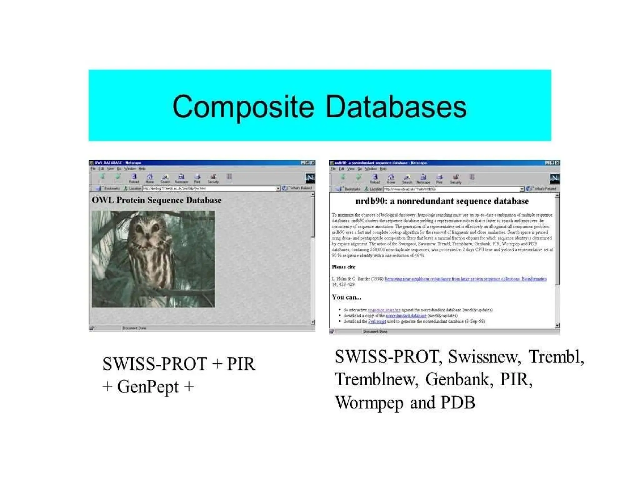 The document provides a comprehensive overview of various biological databases in molecular biology, detailing primary, secondary, and composite databases like GenBank, UniProt, and PDB. It outlines expectations from databases, their structures, and types of data they contain, emphasizing the importance of well-maintained and cross-referenced databases for biological research. Additionally, it mentions specific tools for data analysis and retrieval, further highlighting the critical role databases play in the field of molecular biology.