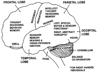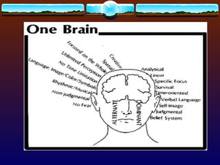 The document discusses the concept of neuroplasticity, illustrating that the brain can change and reorganize itself throughout a person's life based on experiences, learning, and environment. It details various types of neuroplasticity, such as developmental, activity-dependent, and injury-induced plasticity, emphasizing that both positive and negative experiences can shape brain development. Furthermore, factors like attention, repetition, and enriched learning environments play crucial roles in enhancing cognitive abilities and overall brain function.