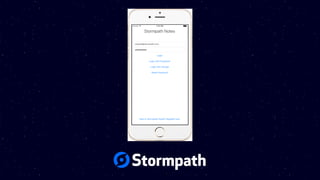 The document outlines how to build a REST API for a note-taking app using Node.js, showcasing various tools like Stormpath for authentication. It provides API endpoints for user registration and note management, along with links to hosted examples and GitHub repositories. Additionally, it suggests trying counterparts for iOS and Android applications and offers contact information for further assistance.