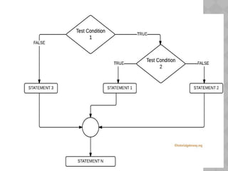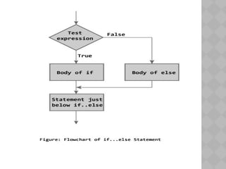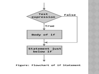 Explanations and examples of decision-making statements: if statement, if-else, nested if, and else-if ladder.