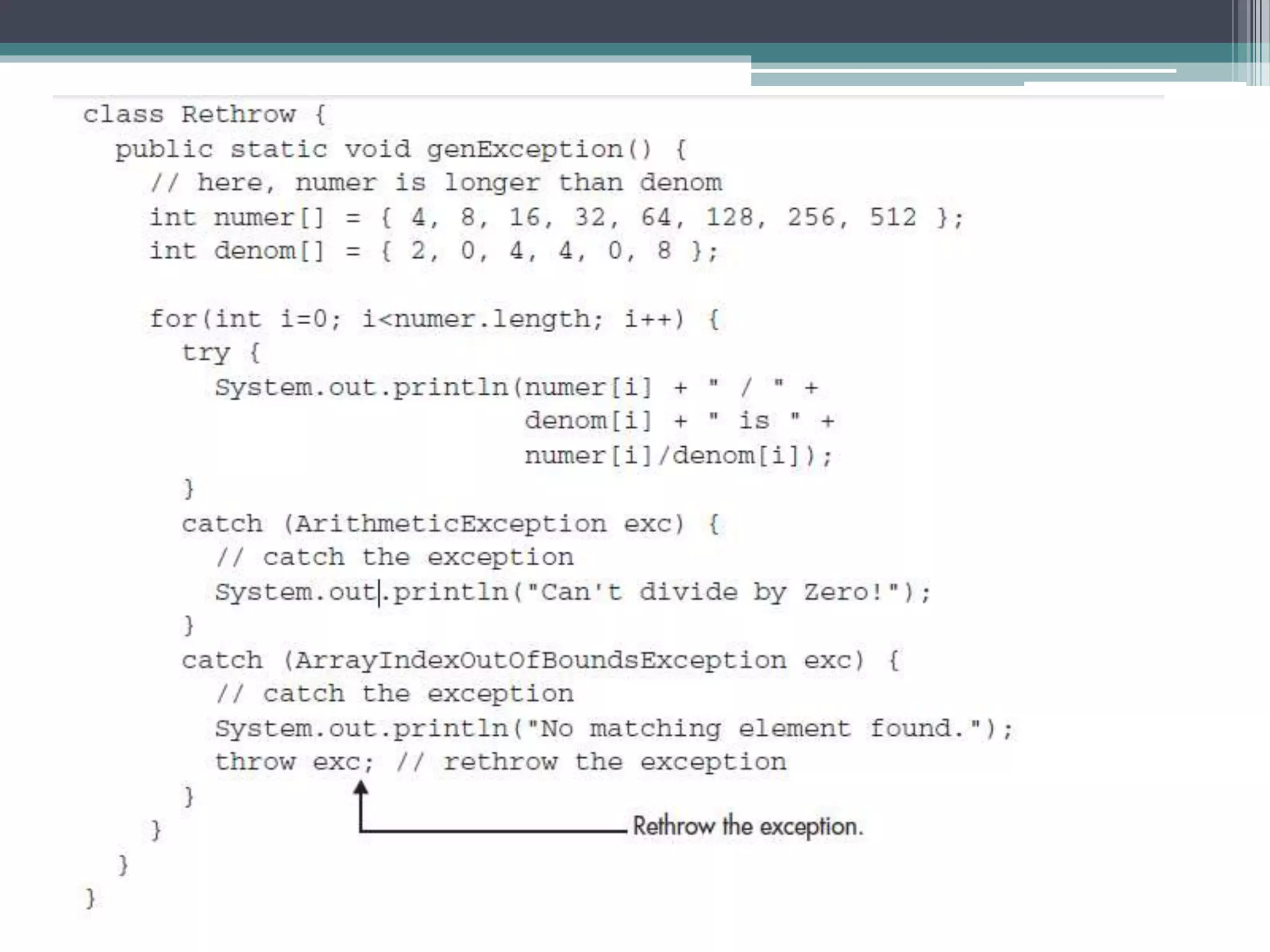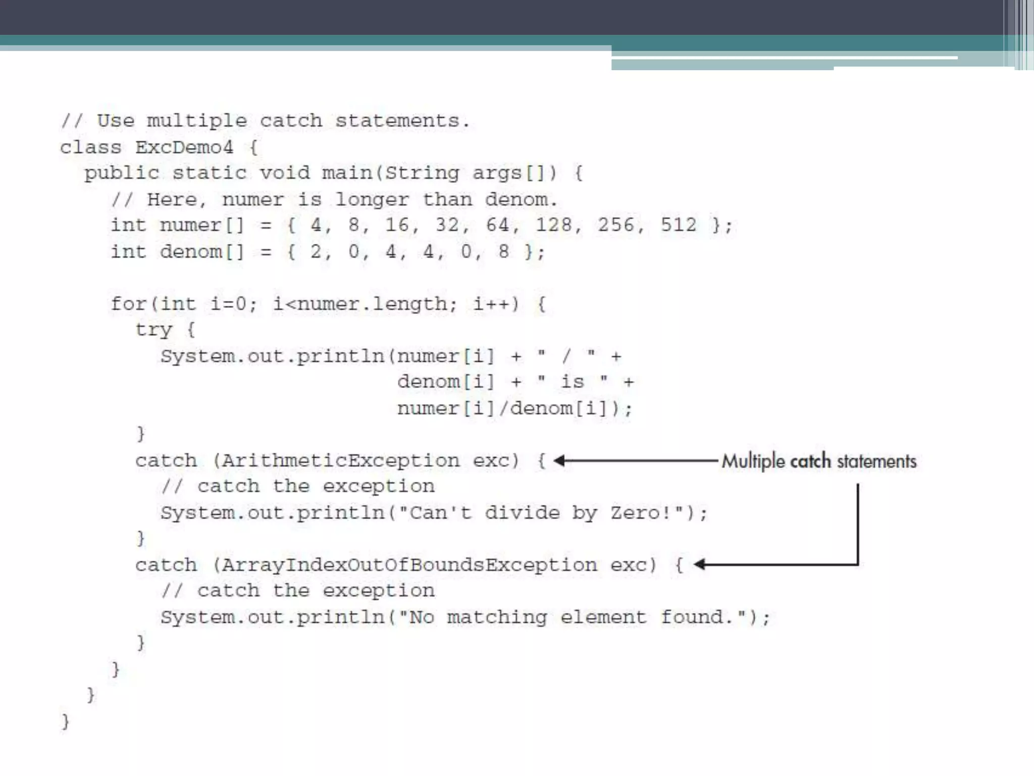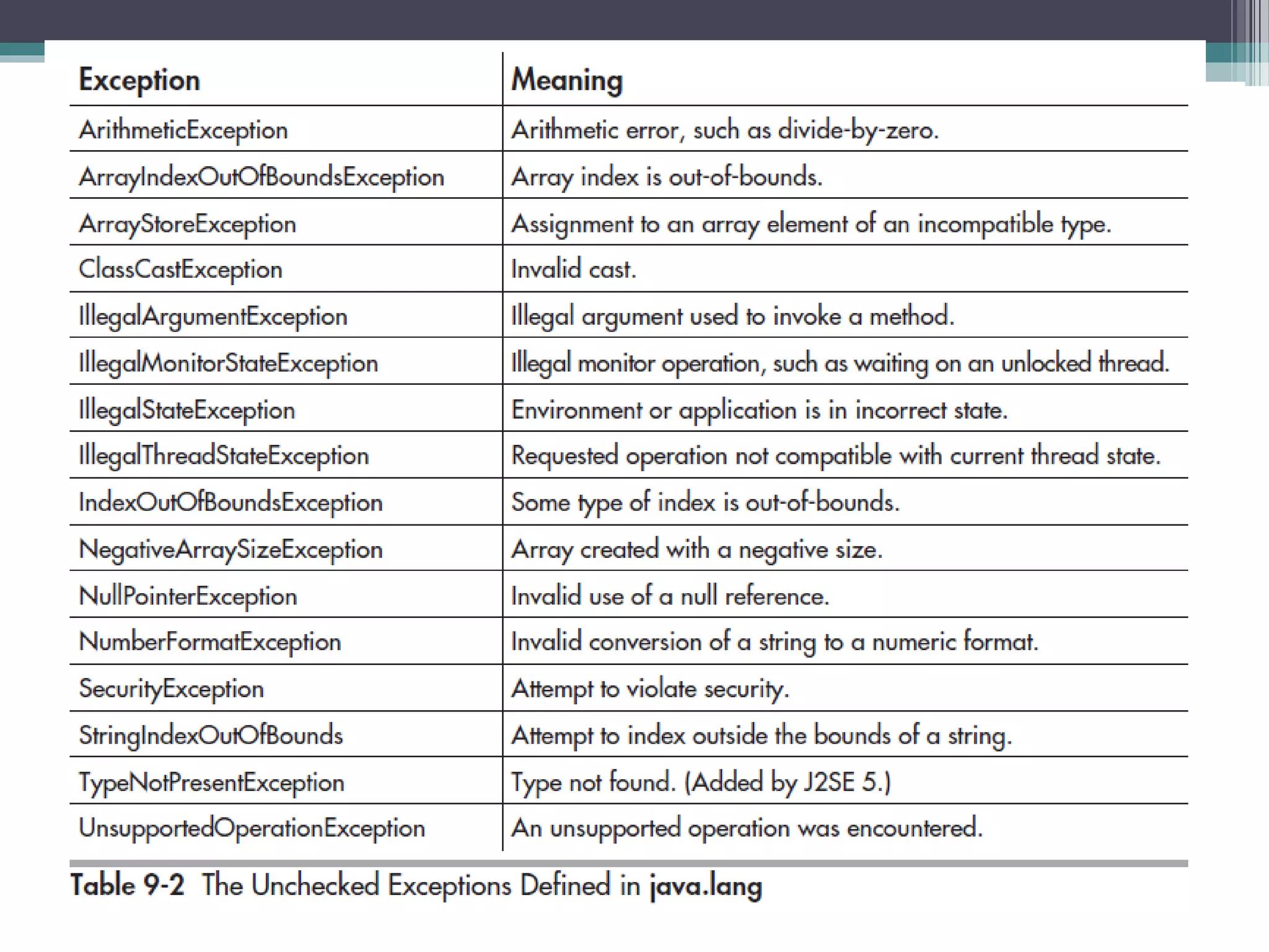 This document discusses Java exception handling. It covers the exception hierarchy, keywords like try, catch, throw, throws and finally. It explains how to handle exceptions, create custom exception subclasses, and Java's built-in exceptions. Exception handling allows programs to define error handling blocks to gracefully handle runtime errors rather than crashing.
