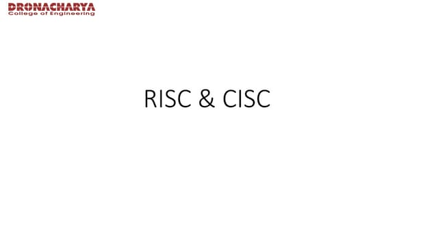 Covers the history, need, characteristics, architectures, and applications for CISC and RISC including various structures.