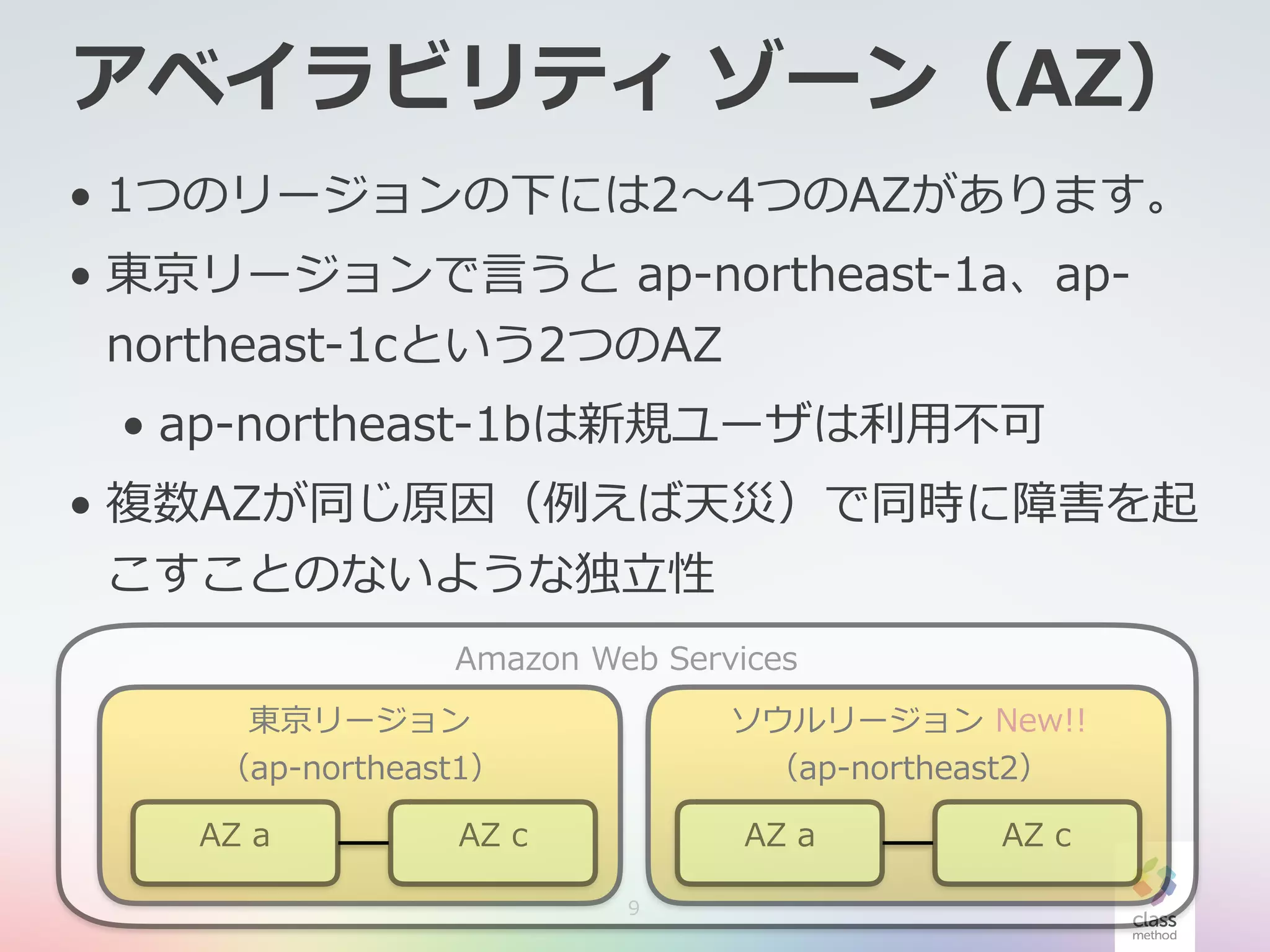 • 東京リージョンで⾔うと ap-northeast-1a、ap-