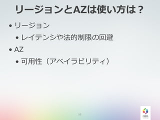 • 複数AZが同じ原因(例えば天災)で同時に障害を起