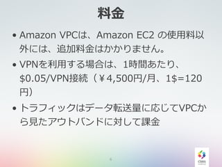 • Amazon VPCは、Amazon EC2 の使⽤料以