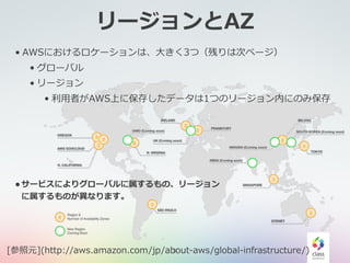 • 1つのリージョンの下には2〜4つのAZがあります。