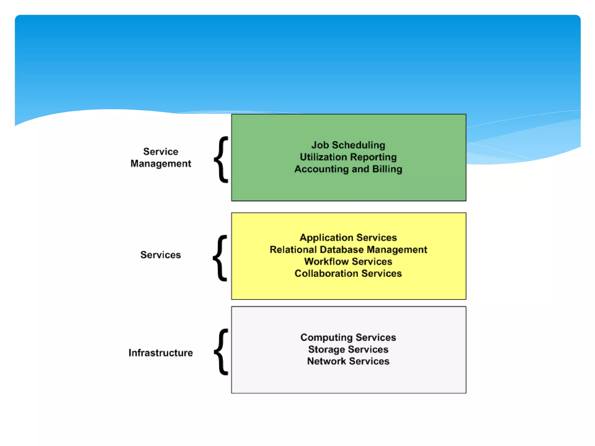 1) Cloud architectures can be thought of as layers of services, with each layer depending on the layer below. This helps control complexity.