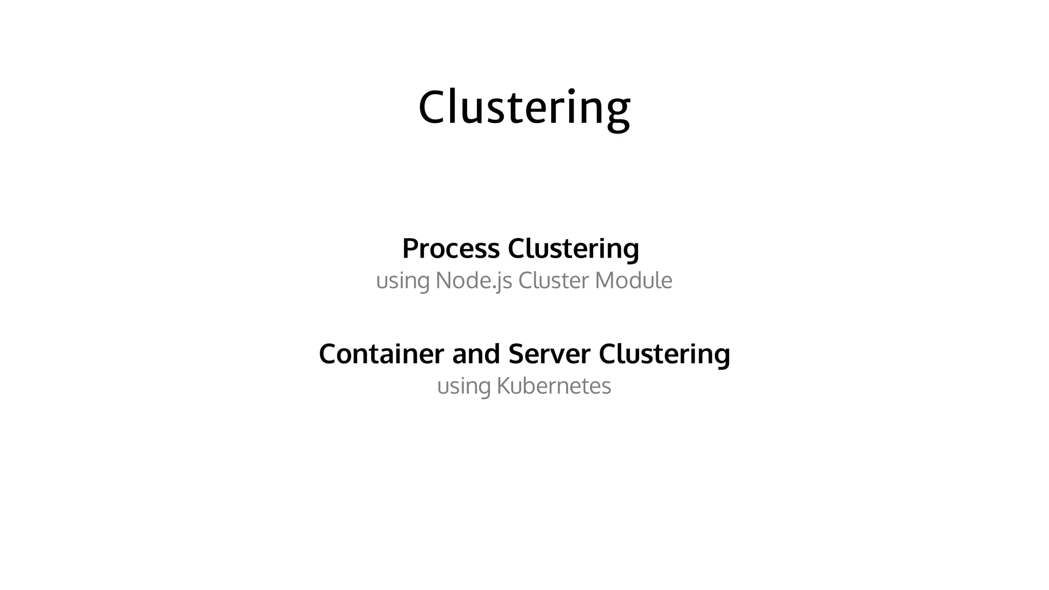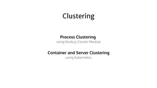 Let's talk about clustering in Node.js, process clustering using the Node.js cluster module and Container Clustering using Docker and Kubernetes.