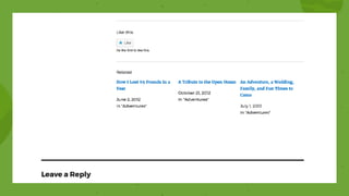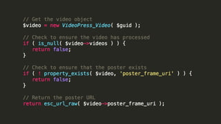 Jetpack adds many popular features from WordPress.com to self-hosted WordPress sites by connecting them to the WordPress.com infrastructure, providing features like a free global CDN (Photon), analytics (Stats), related posts powered by Elasticsearch, social sharing (Publicize), and brute force protection. It also allows extending and customizing Jetpack through staging sites for testing without sending data to WordPress.com and development sites. Popular Jetpack features discussed in more detail include Related Posts, Stats, VideoPress, and Carousel. Resources for developing with Jetpack and the WordPress.com API are provided.