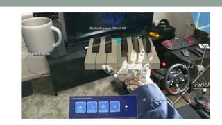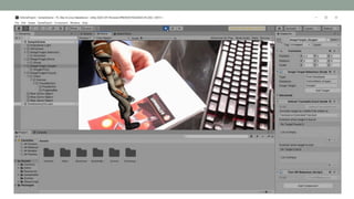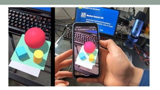 The document discusses various types of augmented reality (AR) interactions, including browsing interfaces, 3D AR, tangible AR, and natural interfaces that facilitate user engagement through gestures, speech, and gaze. It emphasizes the importance of prototyping in interaction design, outlining various high and low fidelity techniques, tools, and processes for developing AR applications. Case studies illustrate the application of AR in navigational aids and immersive experiences, alongside tools for digital authoring and interactive design.