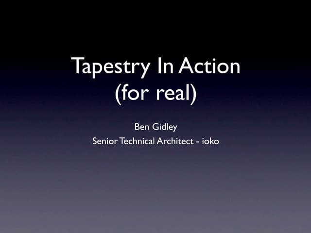 This document provides a primer on component frameworks for JSF users, comparing server-side component-centric frameworks like JSF, Wicket, and Tapestry. It discusses the architectural goals, event handling, and state management features of these frameworks, highlighting their strengths and weaknesses. The author emphasizes the importance of understanding JSF's limitations and learning from other frameworks to improve UI development.