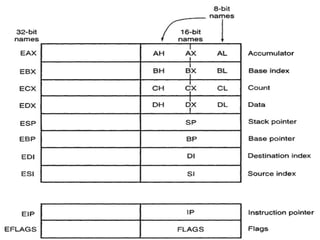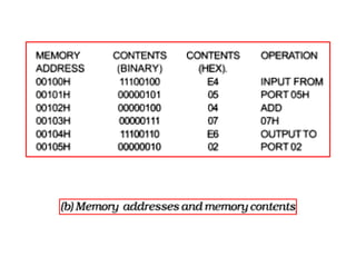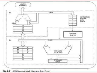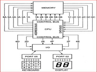 This document provides an overview of microprocessors and microcontrollers. It discusses different types of computers including supercomputers, mainframes, minicomputers, and microcomputers. It also describes the basic parts of a microcomputer including the central processing unit, memory, and input/output ports. The document gives details about memory, buses, and provides examples of instruction execution in a microprocessor. It lists many manufacturers of microprocessors and provides information about the Intel 8086 microprocessor architecture.