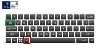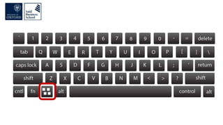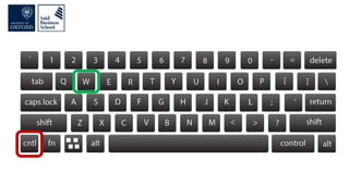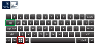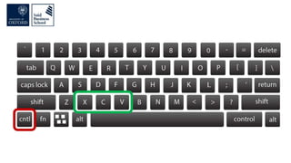 The document discusses improving computer productivity through better use of keyboard shortcuts, file organization, screen organization, and productivity utilities. It provides tips for using keyboard shortcuts over the mouse, organizing files in a logical tree structure with descriptive names and file extensions, displaying windows and resizing screens to maximize viewing areas and minimize distractions. It also recommends various productivity utilities for tasks like clipboard management, password management, file searching, backups, and automation to help synchronize and streamline computer use.