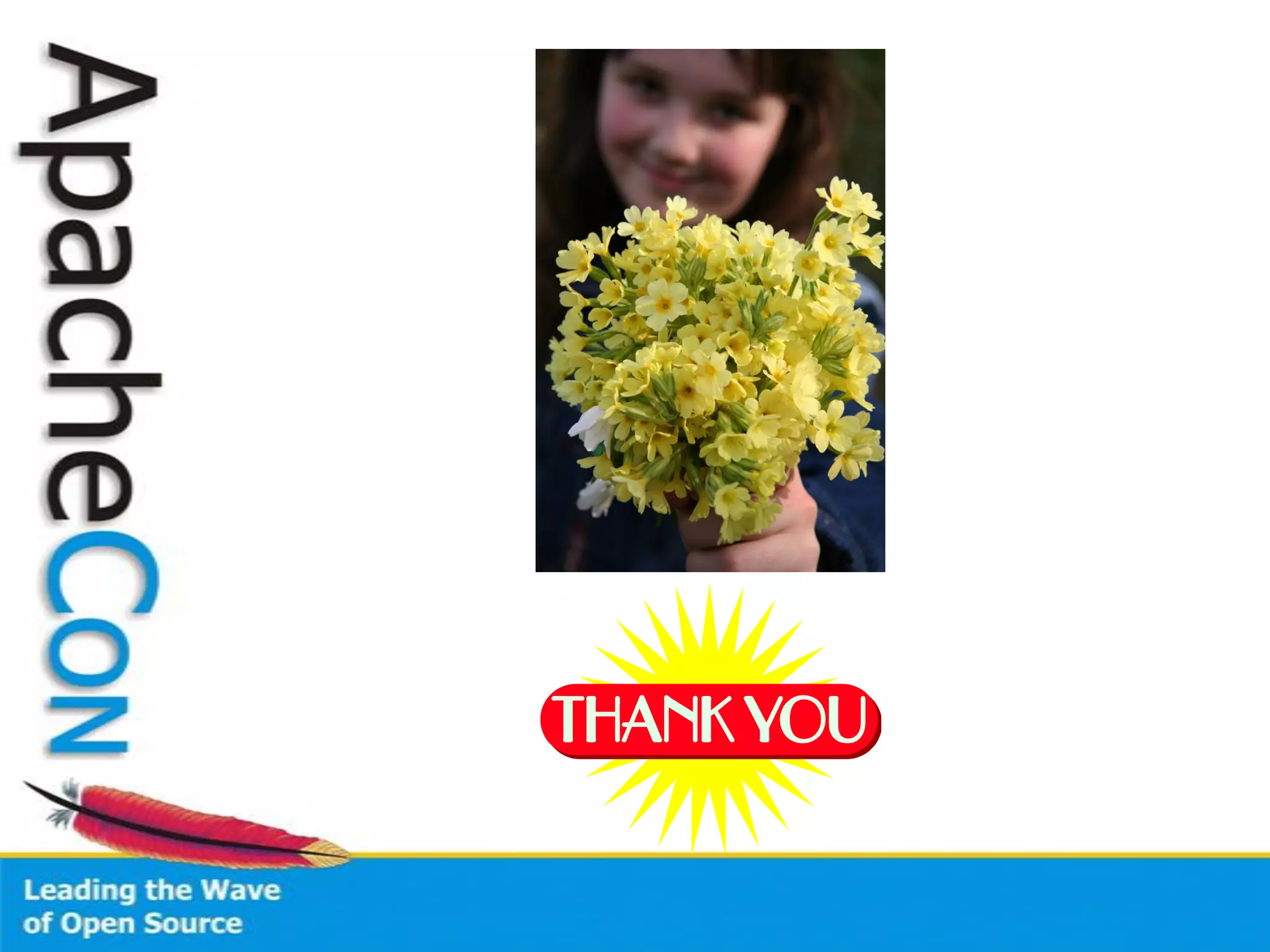 Apache Open WebBeans • 1.0.0 release … October 2010 – http://www.apache.org/dist/openwebbeans/1.0.0/ • Apache License v2 • Running in production web sites • 14 Committers (Looking for more ) • Active developer mailing list • Well defined hook points for integration with JEE containers • Works in Java SE & Java EE – Container agnostic • Consumers – Servlet Containers • Jetty • Apache Tomcat 6, 7 – Apache Open EJB – Apache Geronimo – WebSphere Application Server 8 • Now in beta, Developer license is FREE – WebSphere Community Edition