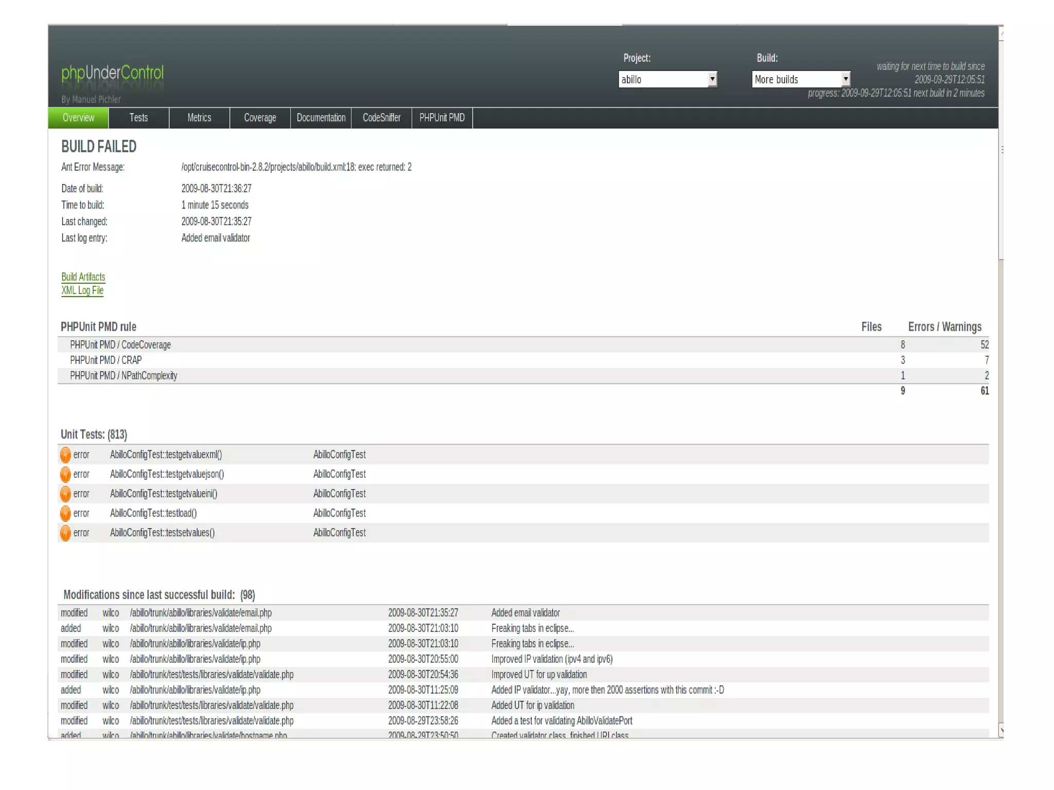 This document discusses continuous integration in PHP development. It explains that continuous integration helps detect problems early through immediate unit testing of all code changes. This prevents integration issues and allows developers to work incrementally with quick feedback. The document recommends writing unit tests with PHPUnit and using tools like PHP Code Sniffer to check code quality. It also discusses code coverage analysis and copy/paste detection to reduce code duplication. Finally, it provides examples of continuous integration environments like CruiseControl that can automate building and testing of PHP applications.