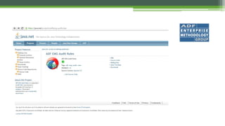 This document discusses creating custom audit rules in Oracle JDeveloper 12c. It covers setting up an extension development environment, creating an extension project, adding a custom audit rule analyzer class, configuring the extension manifest, running and testing the custom rule extension. The goal of custom rules is to analyze code for adherence to programming standards and identify defects to improve code quality and maintainability.