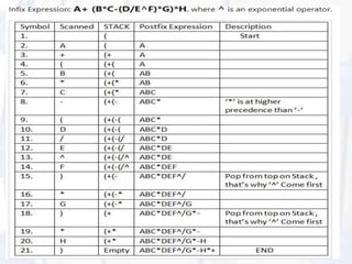This document provides a comprehensive introduction to stacks as a data structure, describing their properties, operations (push, pop, and peek), and implementation using arrays and linked lists. It also covers infix, postfix, and prefix notations for expressions, including algorithms for converting between these notations and evaluating expressions. Additionally, the document discusses recursion, including its types, advantages, and applications like the Tower of Hanoi problem.