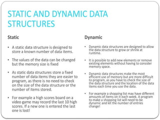 In Static data structure the size of the structure is fixed.The