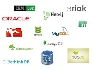 The document discusses different database types including relational (MySQL, PostgreSQL), NoSQL (MongoDB, Redis, Couchbase, Apache Solr), and caching (Memcached) databases. It provides an overview of their properties and usage tips, as well as important concepts like CAP theorem, ACID, BASE, and NewSQL. The document encourages using the right database for the job and embracing failure when building distributed systems.