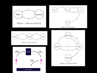 This document provides an introduction to decentralised exchanges (DEX). It begins by defining centralised exchanges and issues with them like security risks and high fees. It then defines DEX as peer-to-peer exchanges that occur directly between users without a third party, allowing users to control their own funds. Key benefits of DEX include lower fees and security, while issues include difficulty of use and low liquidity. Examples of DEX architectures and workflows are provided, as well as examples of specific DEX like 0x, Kyber, and AirSwap. The document concludes with a thank you and invitation for questions.