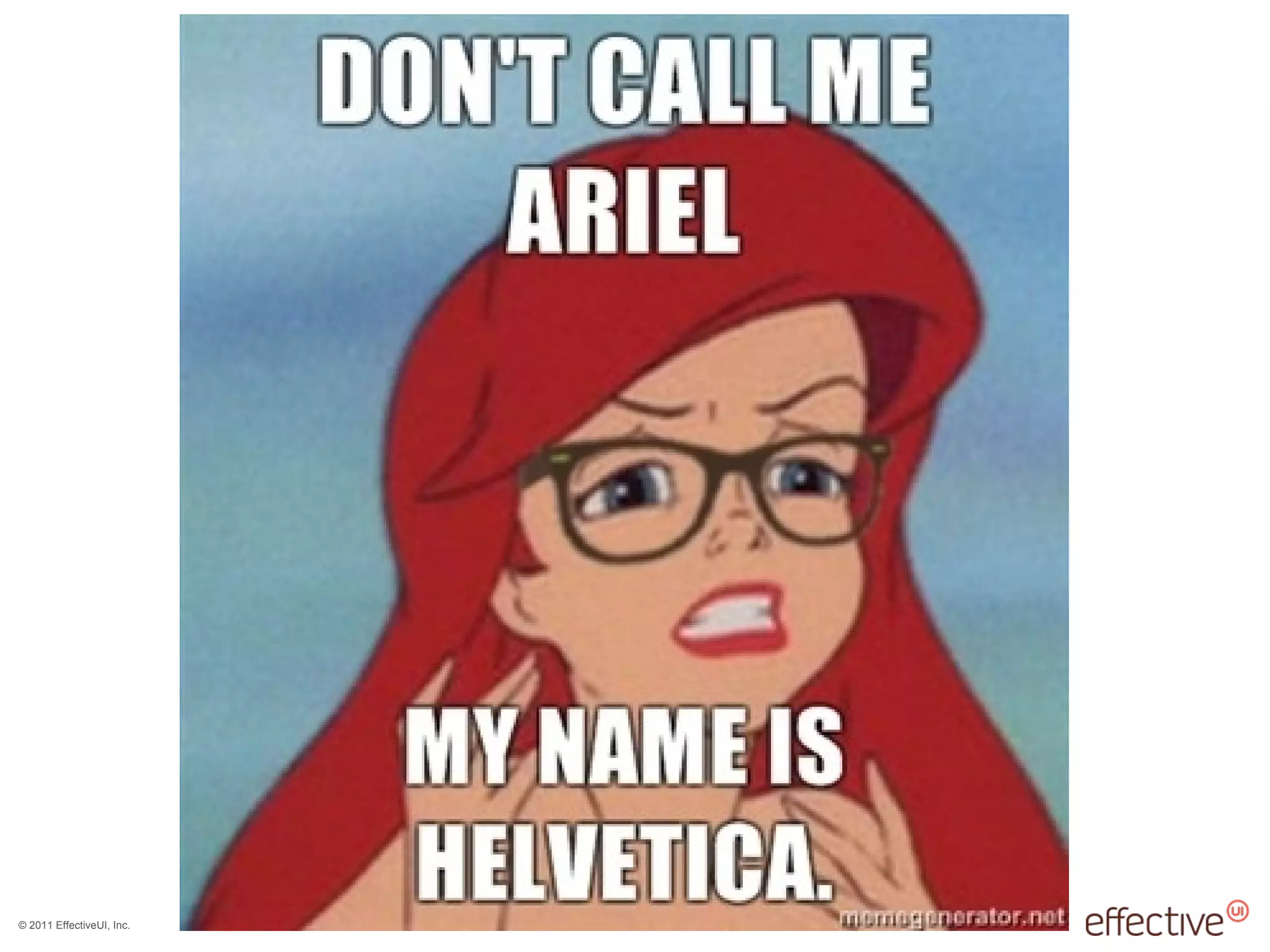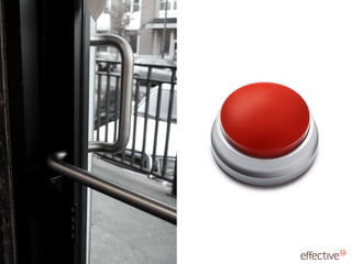 The document discusses essential design principles for developers to improve understanding, communication and collaboration with designers. It covers design research, interaction design and graphic design. The presentation emphasizes making intent visible through ensuring interactive elements are visible, recognizable, have feedback, and are safe and consistent. It encourages developers to validate their ideas through quick user interviews, and to appreciate good design while avoiding some common mistakes.