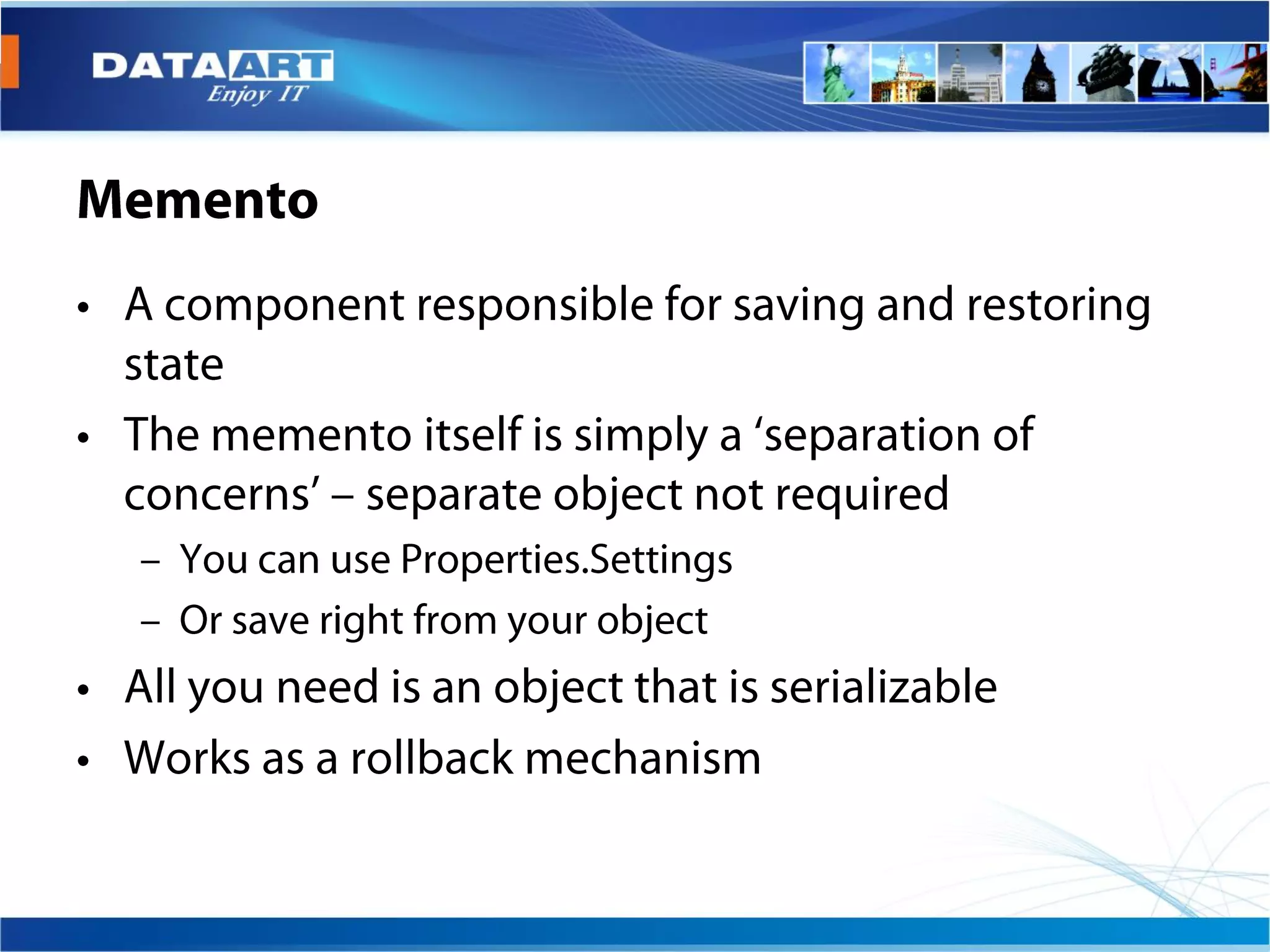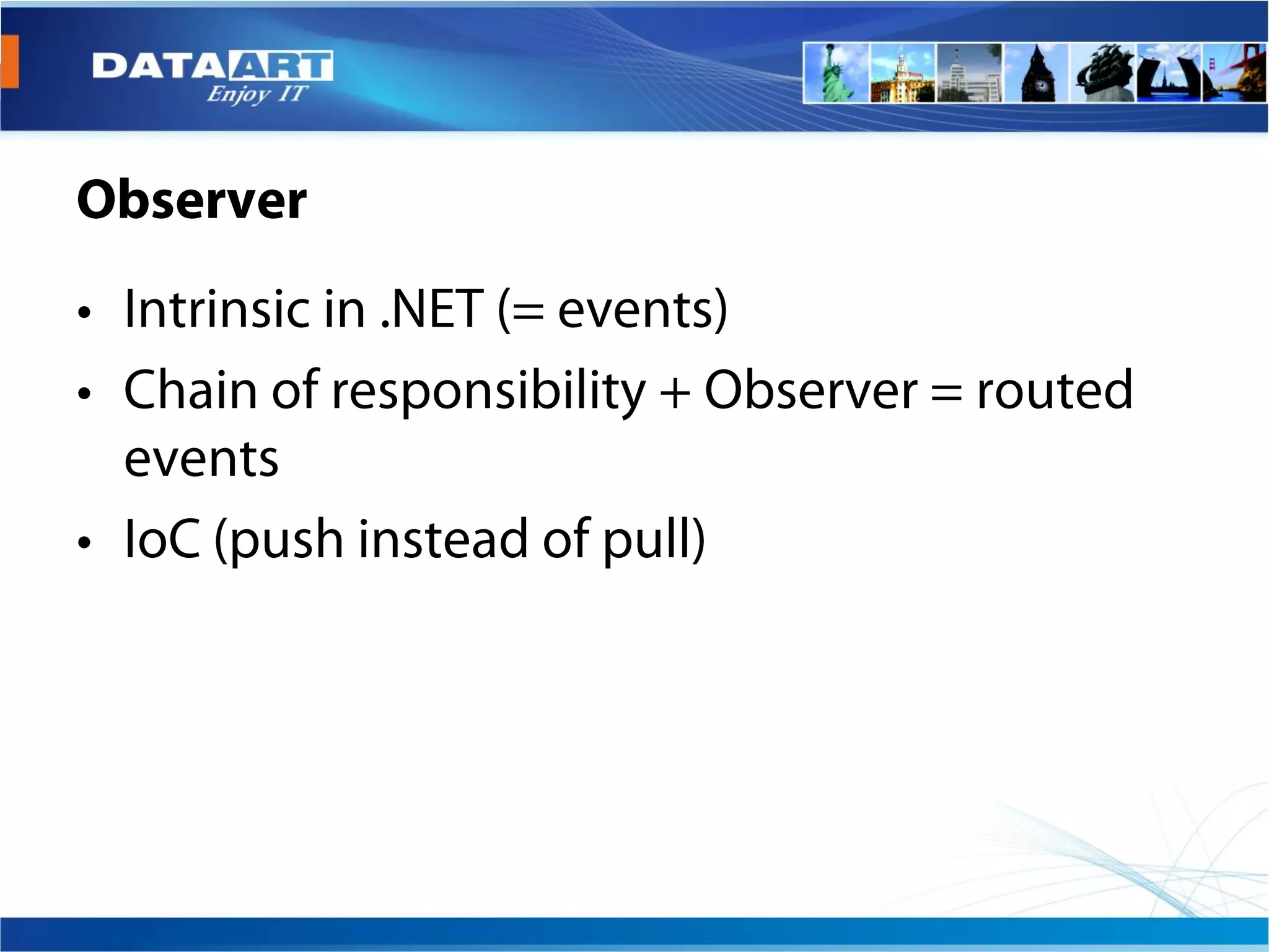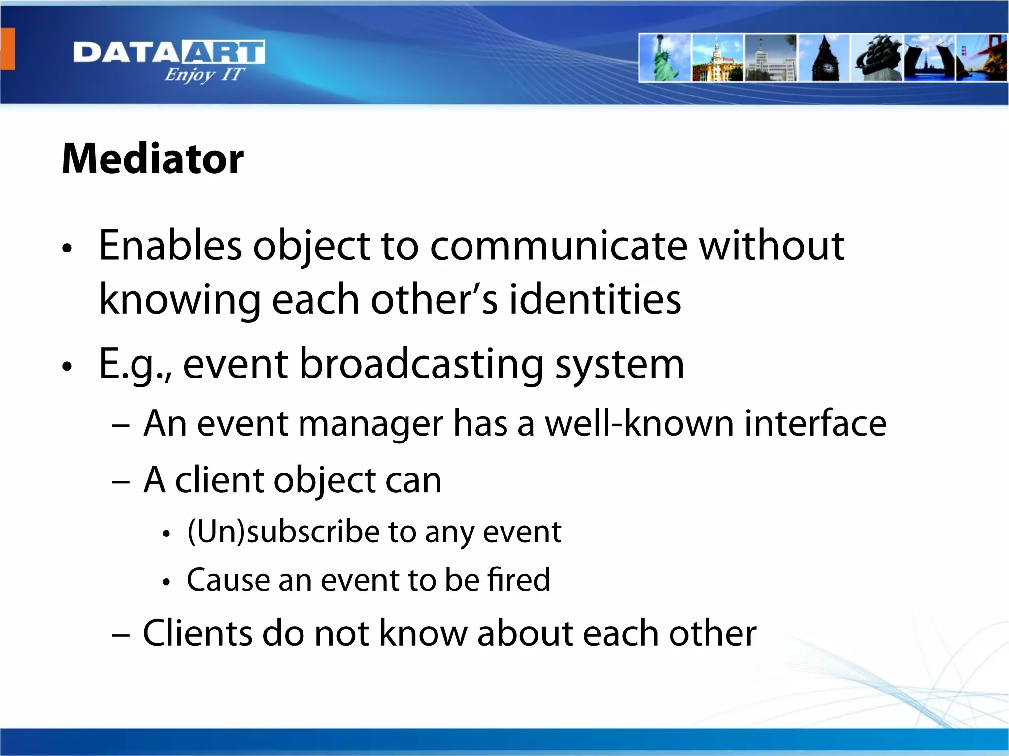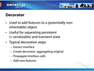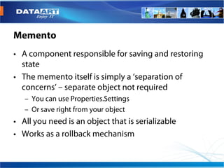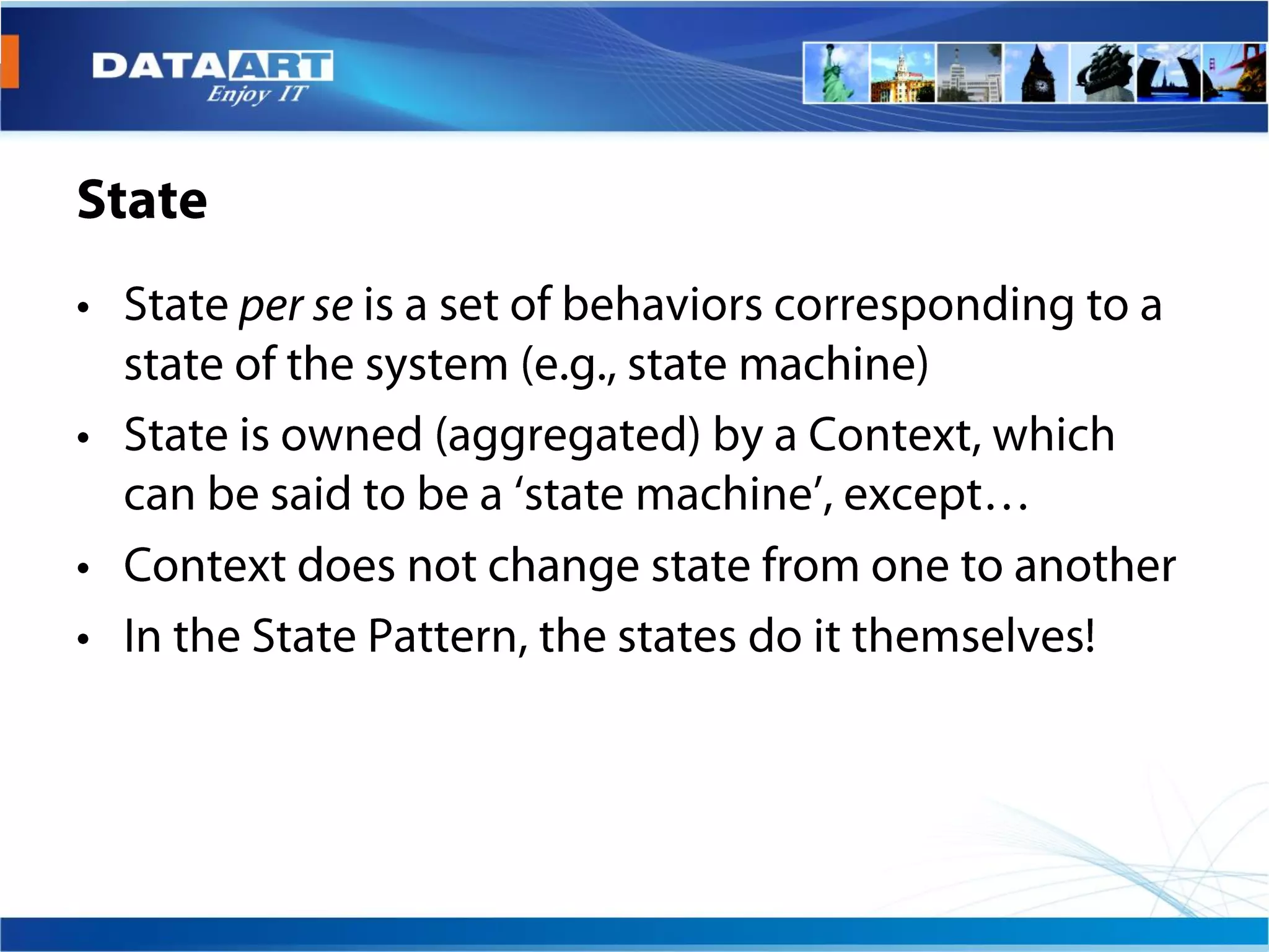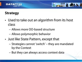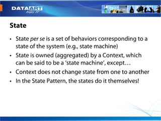2. State pattern which allows an object's behavior to change based on its internal state. Context objects delegate work to state objects to change behavior at runtime.