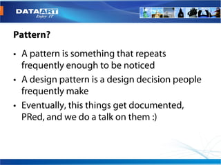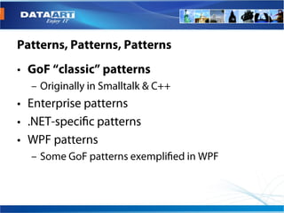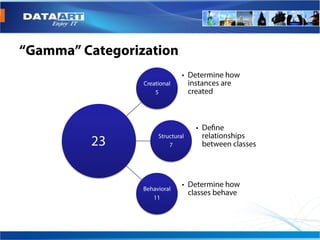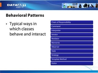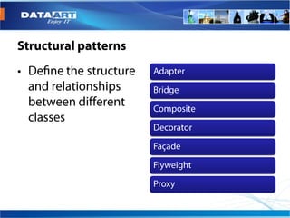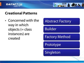 1. The Singleton pattern which ensures a class has only one instance. It provides a global point of access to the instance.
