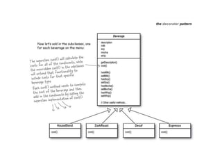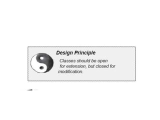 The document discusses design patterns and their importance in software development, particularly in object-oriented programming (OOP). It covers various design patterns such as Singleton, Factory, Strategy, Observer, and Decorator, explaining their usage and benefits while emphasizing concepts like encapsulation, coupling, and cohesion. The content serves as a guide for understanding and implementing these patterns effectively to enhance software architecture.