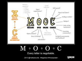 What We Learned • Open teaching can be low-cost, high impact. • ‘Courses’ as shared, global, learning events. • Openness as a way of connecting students to a greater, authentic learning community. • Pedagogical serendipity in open spaces vs. walled gardens. • Importance of student-controlled learning spaces. • Connectivist pedagogy first focus on connecting & interactions; content important, but secondary. • Development of sustainable, long-term, learning connections.