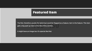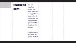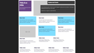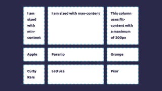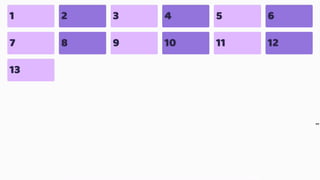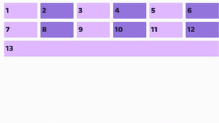 The document discusses using CSS Grid Layout for page layout. It provides examples of how to create a grid with multiple equal columns using grid-template-columns, position elements within the grid using grid-column and grid-row, and make the layout responsive by redefining grid placements in media queries. It also addresses backwards compatibility by providing flexbox fallbacks and using feature queries.